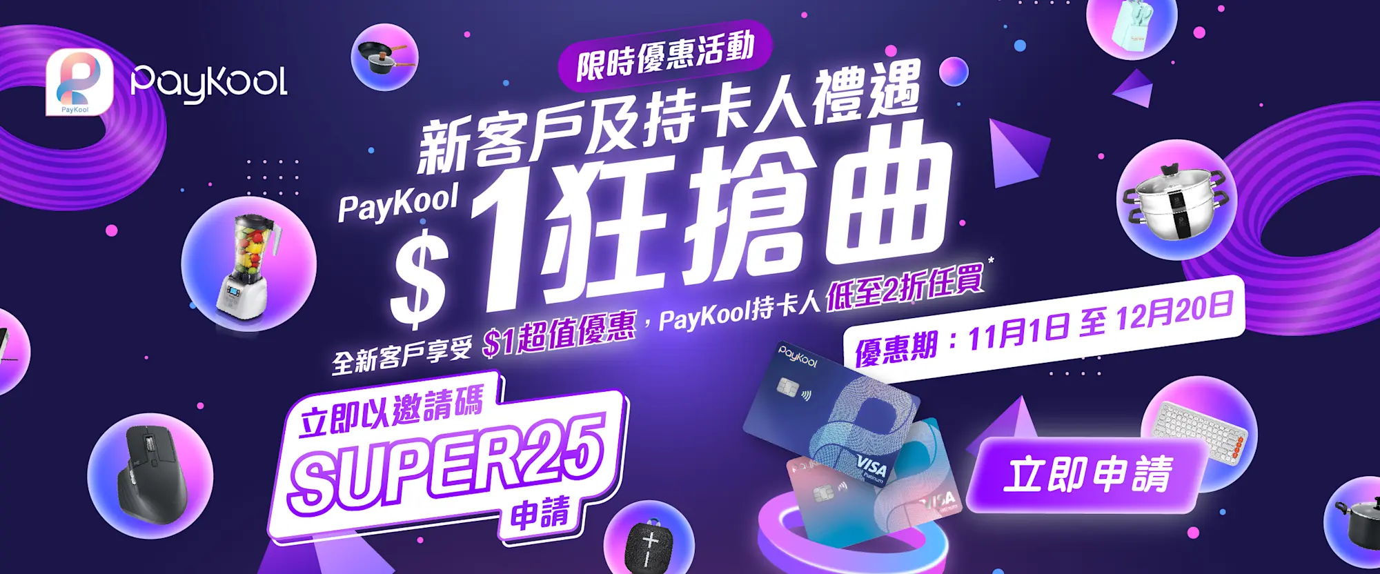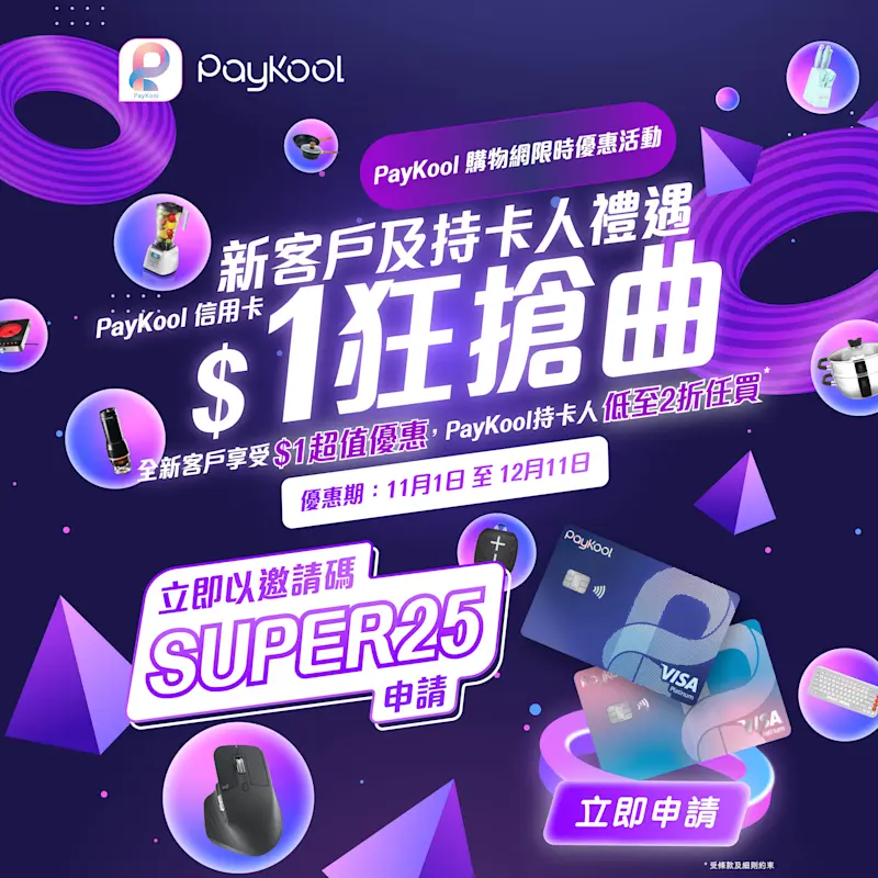 PayKool 是 K Cash Limited(股份代號:2483.HK)發行的 VISA 信用卡。PayKool 消費自由,自主分期!PayKool 深明現代生活中平衡消費欲望與財政規劃的重要性,讓你不再需要在「想要」與「能夠」之間作出妥協,自主分期更有助踢走長期負債,建立屬於自己的消費節奏和態度!
